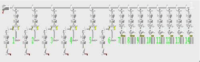 Q02CPU控制17軸變頻器,Q173CPU控制生產(chǎn)加工30軸伺服電機(jī),Q172CPU控制包裝設(shè)備5軸伺服電機(jī).