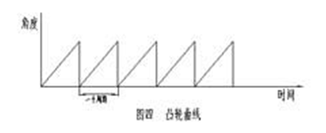 6個(gè)切刀輥設(shè)計(jì)為往復(fù)式自由凸輪模式.一個(gè)周期為此360°與切刀輥一轉(zhuǎn)相對(duì)應(yīng).其凸輪曲線如圖4所示 。