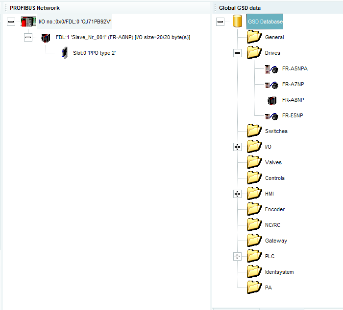 每個Profibus總線網絡模塊在組態時,都需要對應的GSD文件。而一些新模塊的GSD文件在組態軟件GX configurator-DP中并沒有,需要人工在三菱官網上下載并添加進去。之所以會出現找不到型號的問題,就是因為沒有在軟件中增添相應GSD文件。FR-A7NP和FR-A8NP唯一使用區別就是安裝的GSD文件不一樣。而變頻器參數,PLC程序,以及軟件組態都一樣。(具體使用方法可撥打我公司技術熱線0755-88352540咨詢。)